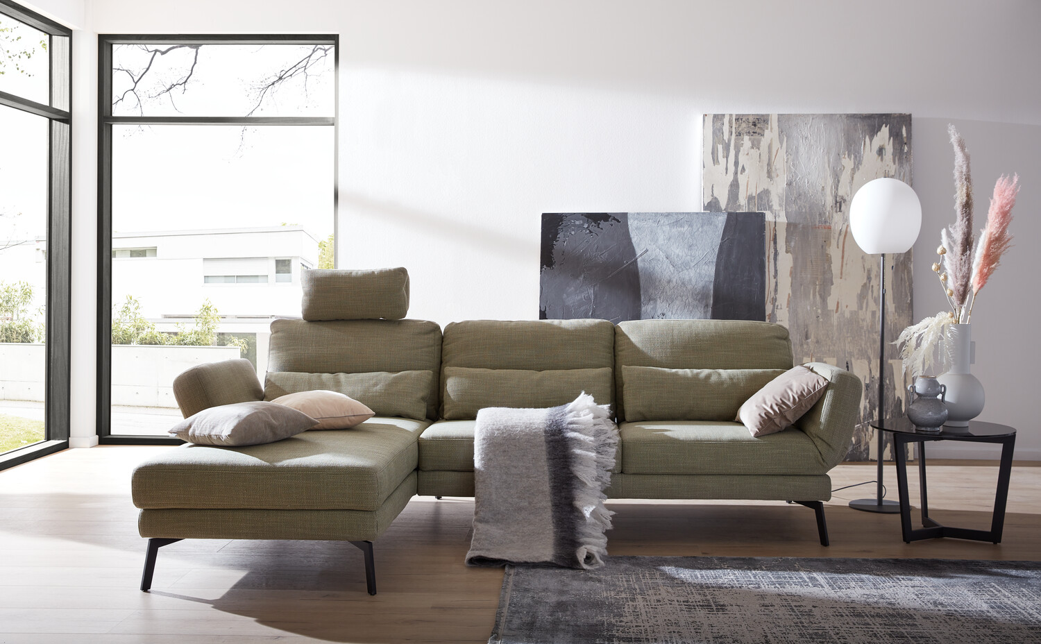 - Sofa mit Drehsitzbeschlag, Rückenneigung veränderbar und klappbare Armlehne